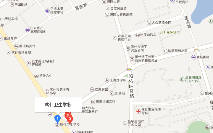 喀什卫生学校,位于新疆省喀什市解放南路494号,喀什市,隶属新疆维吾尔自治区喀什地区,位于新疆西南缘,塔里木盆地西部,东临塔克拉玛干沙漠,南依喀喇昆仑山与西藏阿里地区,西靠帕米尔高原,是中国最西部的边陲城市,是喀什地区行政公署驻地。喀什是南疆的政治、经济、文化、交通中心,农牧产品最大集散地。也是古丝绸之路上的商埠重镇,东西方交通的咽喉枢纽和东西方经济文化和文明的重要交汇点。