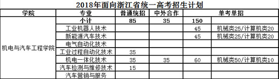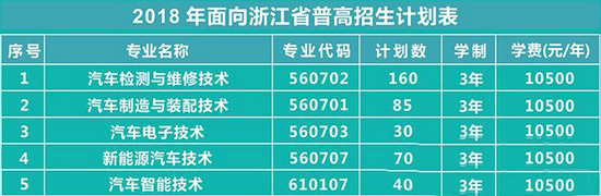 浙江汽车职业技术学院招生计划:
