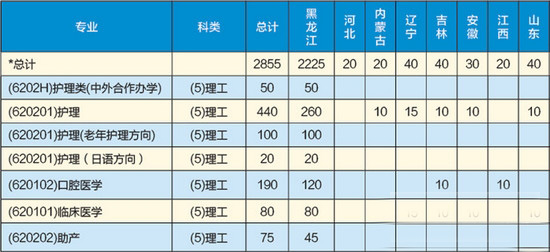 黑龙江护理高等专科学校招生计划: