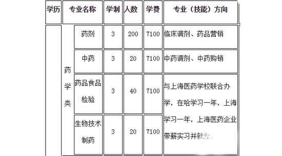 黑龙江药剂专业学校招生要求及简章