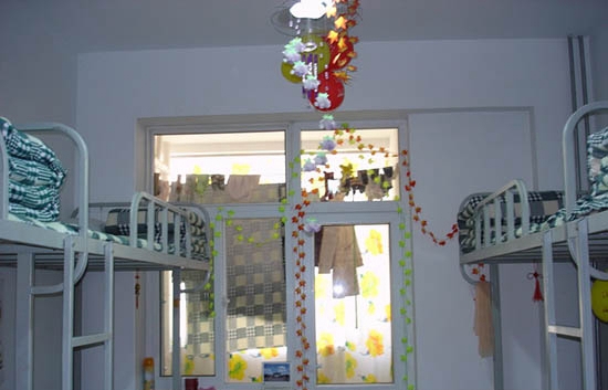 1、4人一间~每人一厨一床一写字台~没空调,每幢楼各楼层有两间公用洗漱间(包含公用厕所)。。底层有一间公用浴室,有宽带条件。不计在住宿费,自己另行叫电信局安装,住宿区有一游泳馆,一溜冰馆。大型的(针对全市开放)。