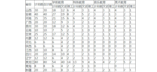 长春师范高等专科学校招生计划: