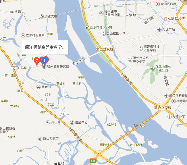 闽江师范高等专科学校-教学楼附近的公交站:大学城福州教育学院、大学城福州教育学院、马保村、乌龙江大道、马保村、葛岐村、浦上大桥西、群升江山城(马保村南)、大学城师大旗山校区东门、师大协和学院、大学城师大旗山校区东门、大学城师大东门。