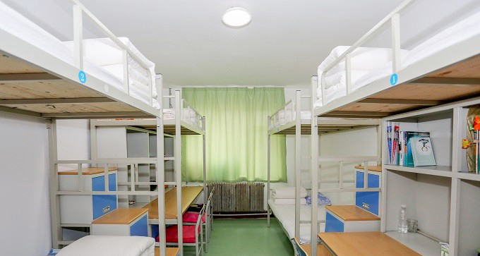 六到八人间上下铺,宿舍配有私人专门的衣柜、鞋柜,空调、热水器、独立卫生间,环境舒适,学生可以自己装扮宿舍,宿舍的整洁需要大家共同维持,爱护环境