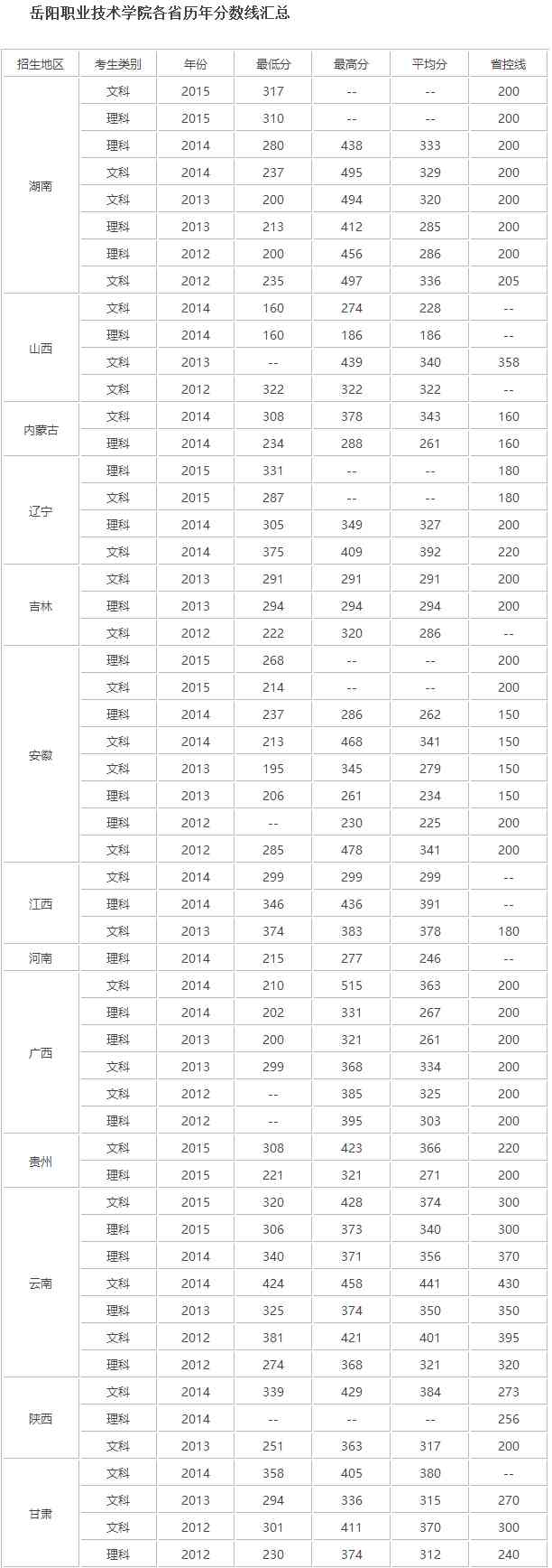 一、岳阳职业技术学院招生录取分数线