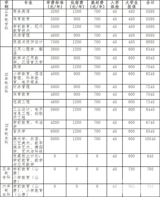 二、长沙师范学院学费及其收费标准
