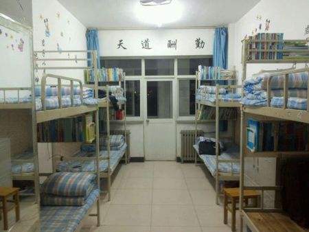 学生宿舍分两种:一种是1000的,六个人一个屋的,就是上下铺的;一种是1200的。