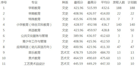 福建幼儿师范高等专科学校招生分数线: