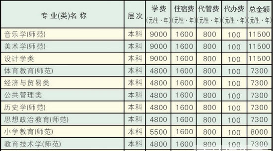 普通本科类专业:学前教育(师范)专业学费:5520元/生.学年