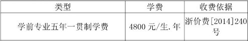 普通专科其他科类专业:学前教育(师范)4800元/生.学年