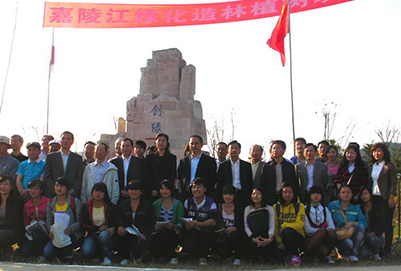 商务日语专业学生与日本来宾一起参加“中日友好植树造林活动”合影