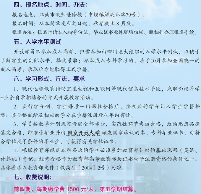 关键词:绵阳,电大,江油,分校,秋,本科,、,专科,2025年,