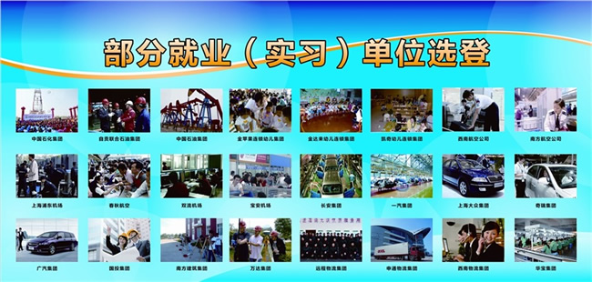 学校在北京、上海、广州、深圳、杭州、成都、青岛、大连、福州等地专门设立了就业办事处。目前,学校已与中石油、中石化、步步高集团、光宝科技集团、辅迅光电科技集团、长虹集团、九州集团、华能集团、海尔集团、中国海关、昆山商务集团、苏州商务集团、富士康集团、康佳集团、三星集团、自贡联合石油集团、佳能集团、华硕集团、新威集团、新成达集团等200多家用人单位签订了就业安置协议,确保每位合格学生百分之百优质高薪就业