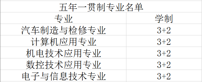五年一贯制专业名单