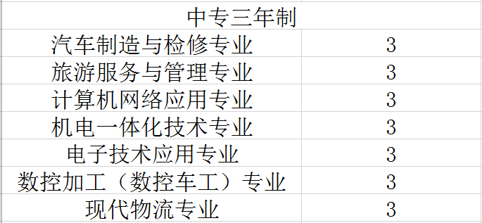 中专三年制专业名单