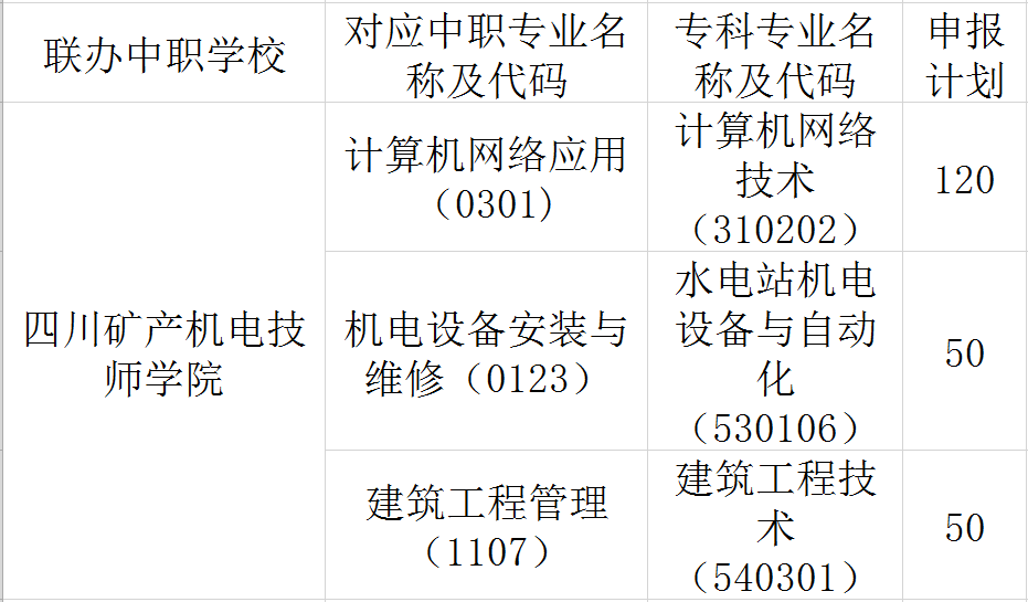 四川水利职业技术学院五年制大专与5所学校联合举办五年制大专升学计划。下面是五所联办学校对应招生专业及招生计划。
