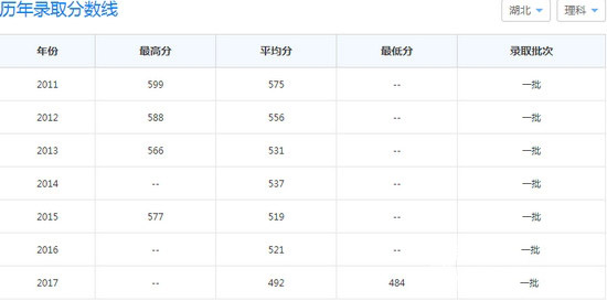 湖北医药学院招生分数线: