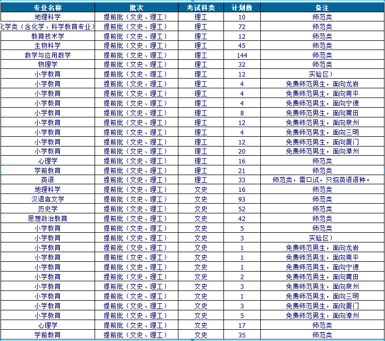 一、闽南师范大学招生简章及计划
